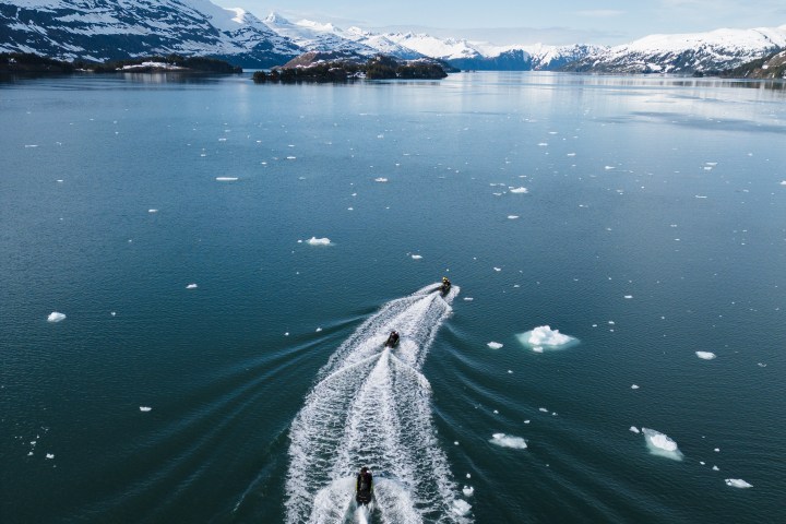 Small groups — big adventure! Meet your guide at our lovely log cabin on Harbor Dr. right next to the harbor launch ramp to get geared up in drysuits and safety equipment. You’ll get instructions on operations and then prepare to launch from the safety of the harbor. You’ll ride nearly 55 miles on our high-performance SEADOO watercraft (PWC) from Whittier to Blackstone Bay and back.