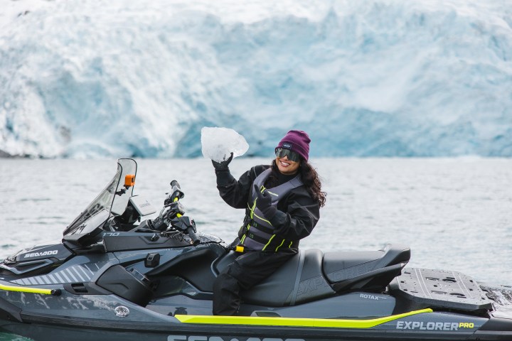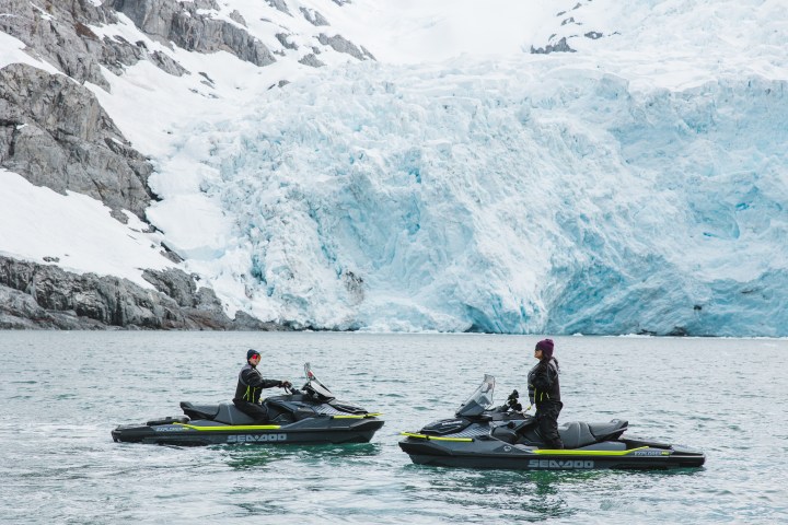 On your Alaska jet ski tour, you may be able to view 10 glaciers including two tidewater glaciers, a kittiwake rookery and massive waterfalls coming straight out of the glacier! You’ll get plenty of time to sit in front of the glaciers watching for calving icebergs. As we skim along the water we’ll keep our eye open for seals, otters, sea lions, eagles and whales. Heated handle grips help keep riders warm as you sit in front of the glacier or on colder days.